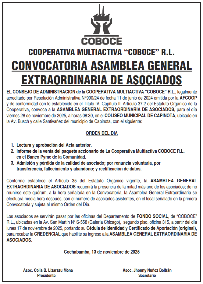 CONVOCATORIA ASAMBLEA GENERAL EXTRAORDINARIA