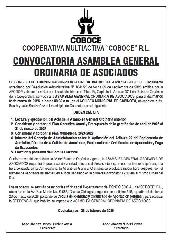 CONVOCATORIA ASAMBLEA GENERAL ORDINARIA