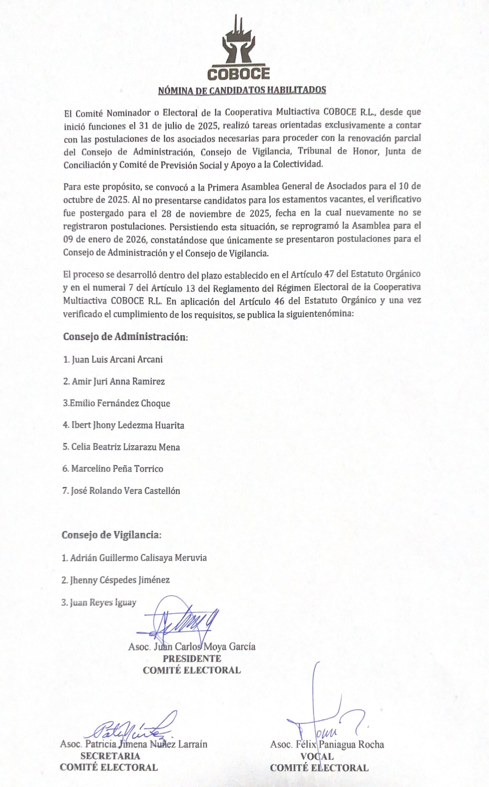 NÓMINA DE CANDIDATOS HABILITADOS